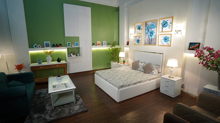 Luxury meets creativity in our studio bedroom setup perfect for high-end shoots and cinematic scenes.